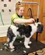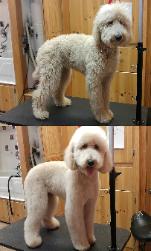 knots or snarls remain. He or she will then be clipped and scissored to breed standard