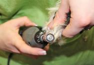 The nails are filed down using a sanding tool. This makes them nice and smooth