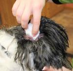 Ear Cleaning! At this point we are also looking for signs of infection, ear mites, etc. Plucking is also done on some breeds.