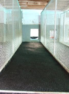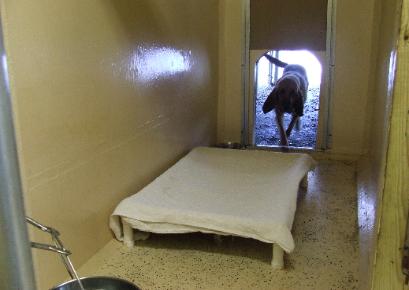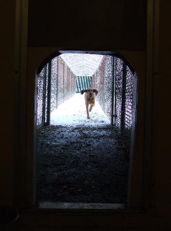 | Reba (our 90 pound bloodhound) running the 75' from one end of her cold kennel run to the other. |