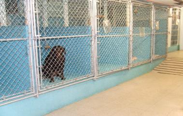 | Reba (our 90 pound bloodhound) running the 75' from one end of her cold kennel run to the other. |